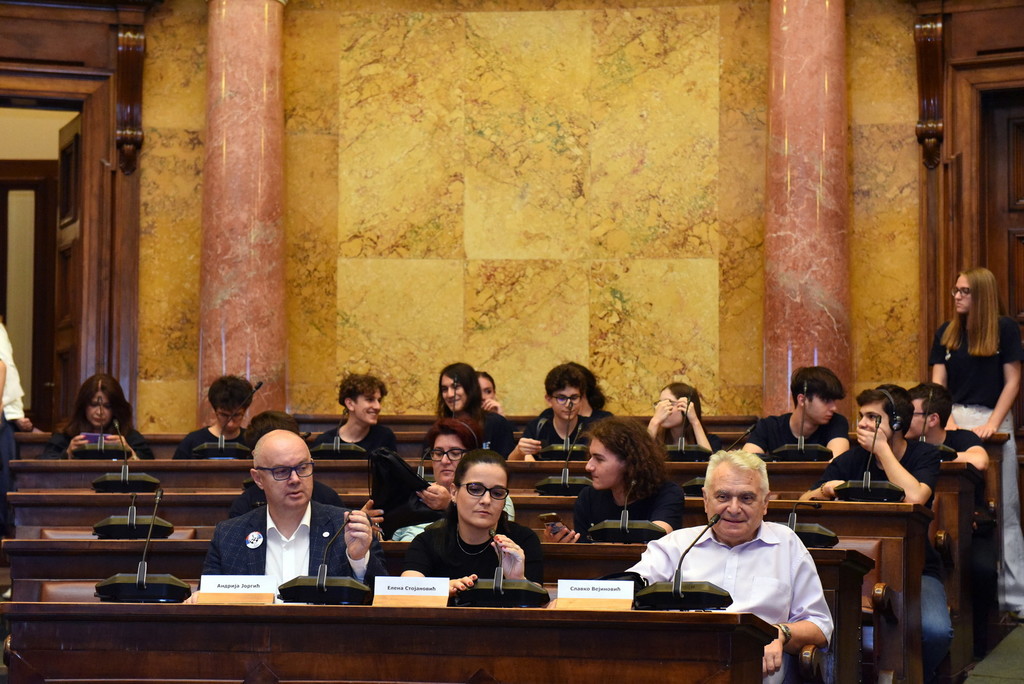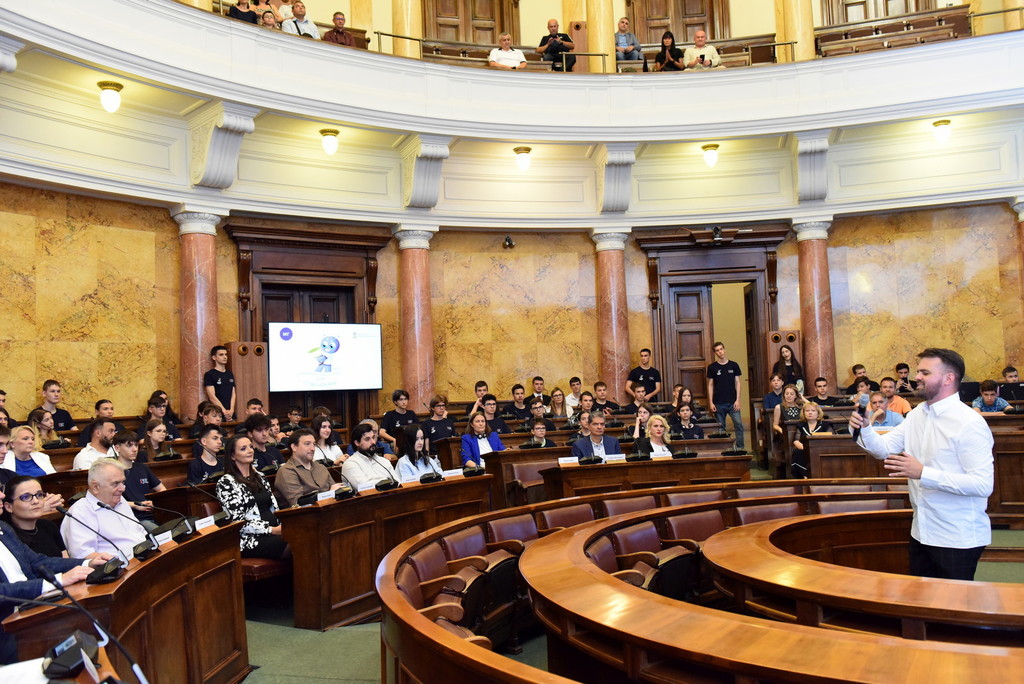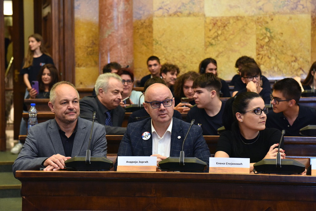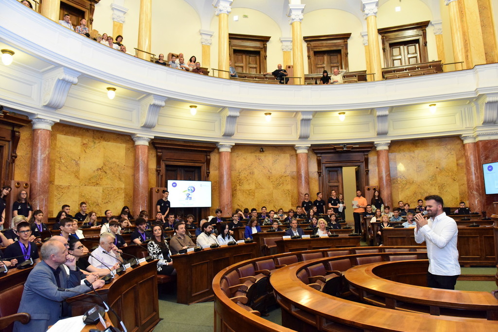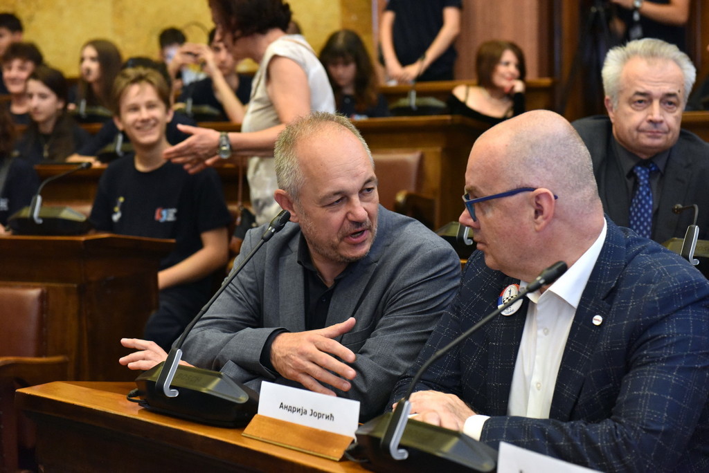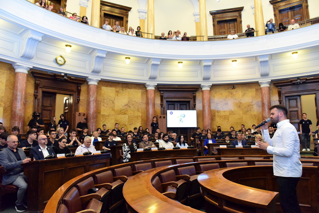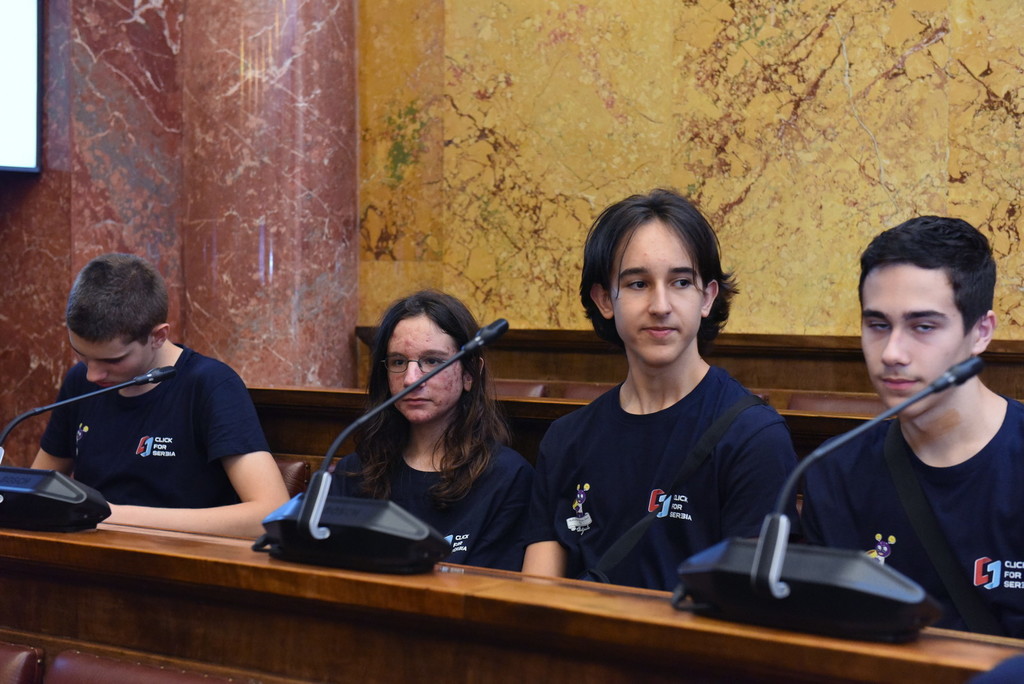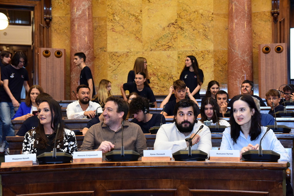 ОпштеМЕЂУНАРОДНА ТАКМИЧЕЊА-фотографијеУ среду, 26. јуна 2024. године у Народној скупштини Републике Србије свечано је затворен дванаести Куп Математичке гимназије. Гостима се обратила директорка Мирјана Катић. Министарство просвете је и ове године било покровитељ Купа. Куп су финансијски помогли: непрофитна организација “Клик за Србију”, компанија “Бамби”, Фондација “Сања Миленковић”, компанија “АБ Софт” и компанија Wargaming.