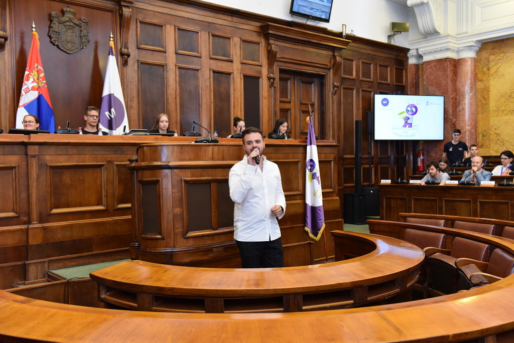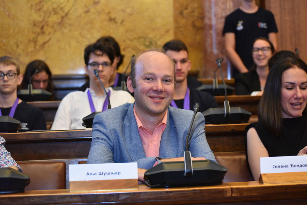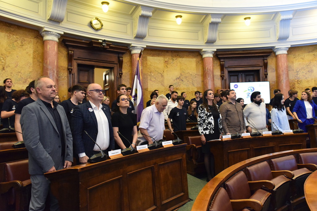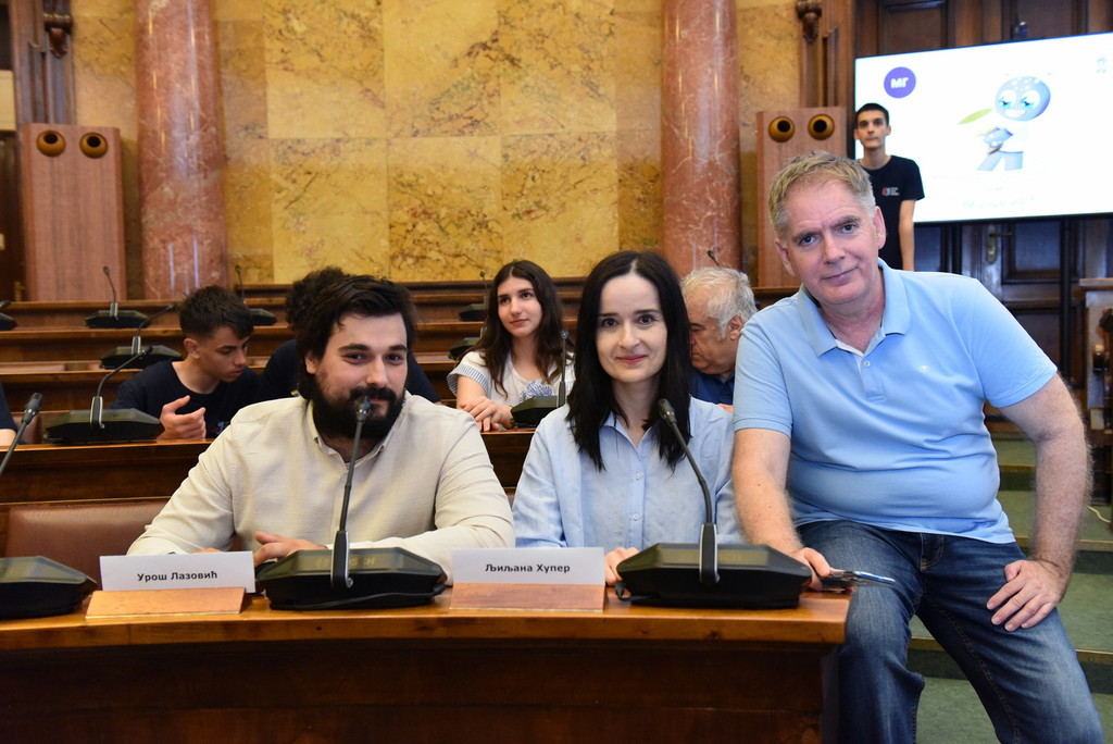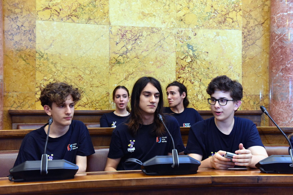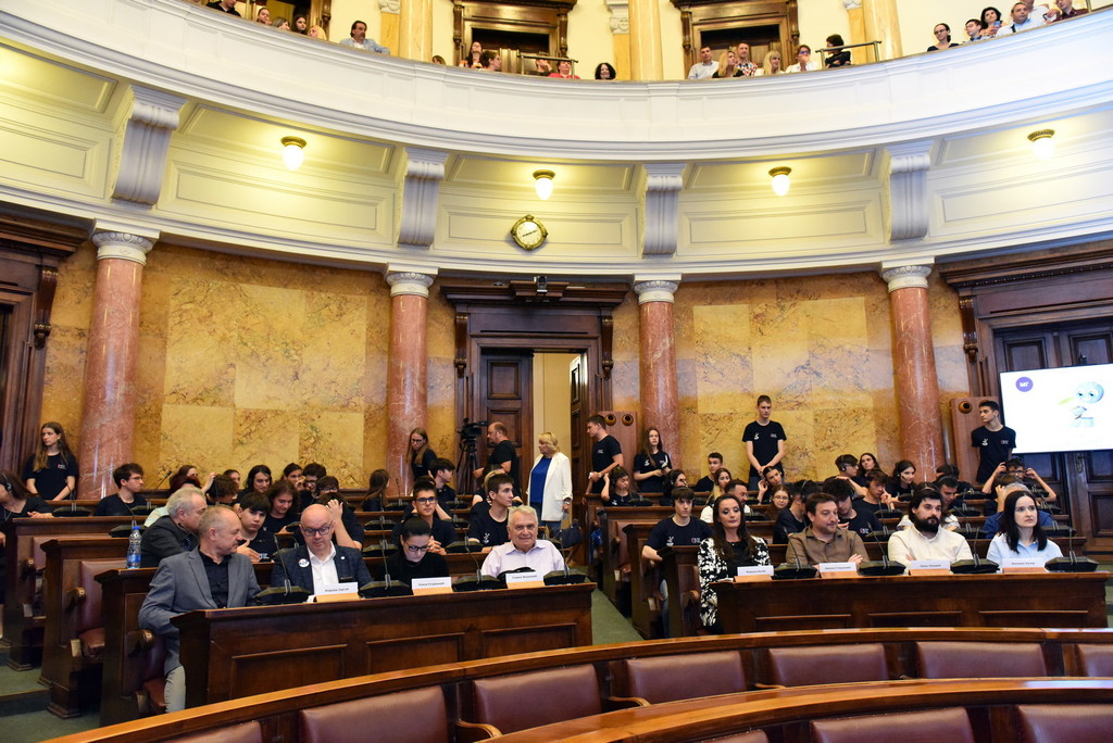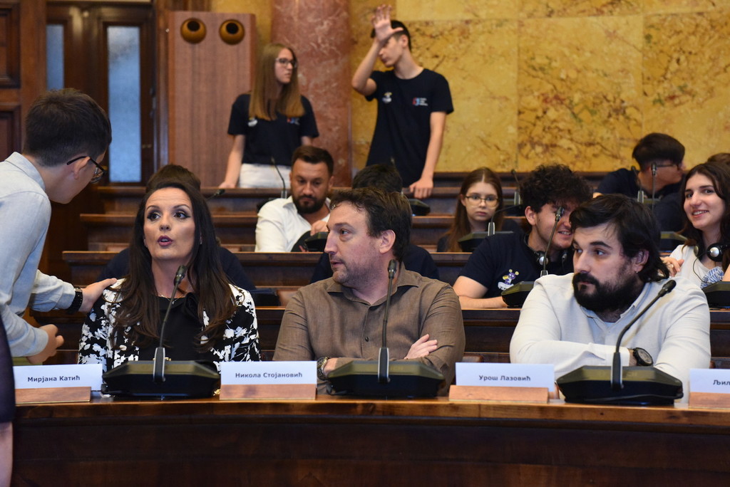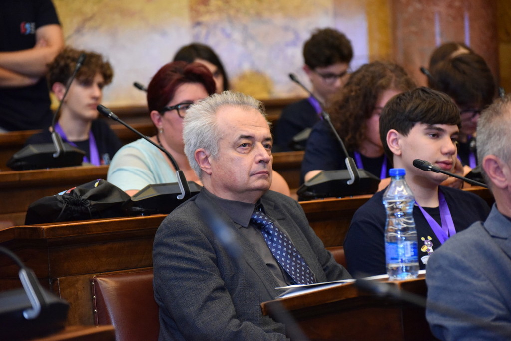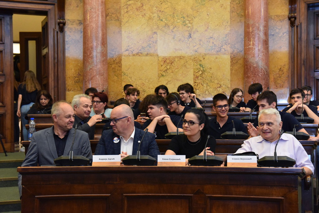 ОпштеМЕЂУНАРОДНА ТАКМИЧЕЊА-фотографијеУ среду, 26. јуна 2024. године у Народној скупштини Републике Србије свечано је затворен дванаести Куп Математичке гимназије. Гостима се обратила директорка Мирјана Катић. Министарство просвете је и ове године било покровитељ Купа. Куп су финансијски помогли: непрофитна организација “Клик за Србију”, компанија “Бамби”, Фондација “Сања Миленковић”, компанија “АБ Софт” и компанија Wargaming.
