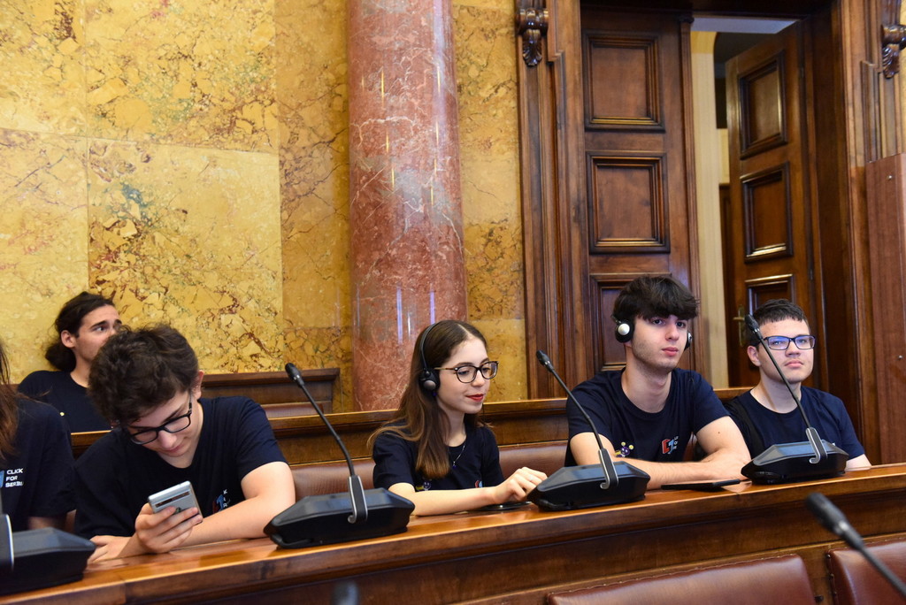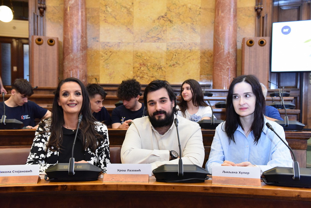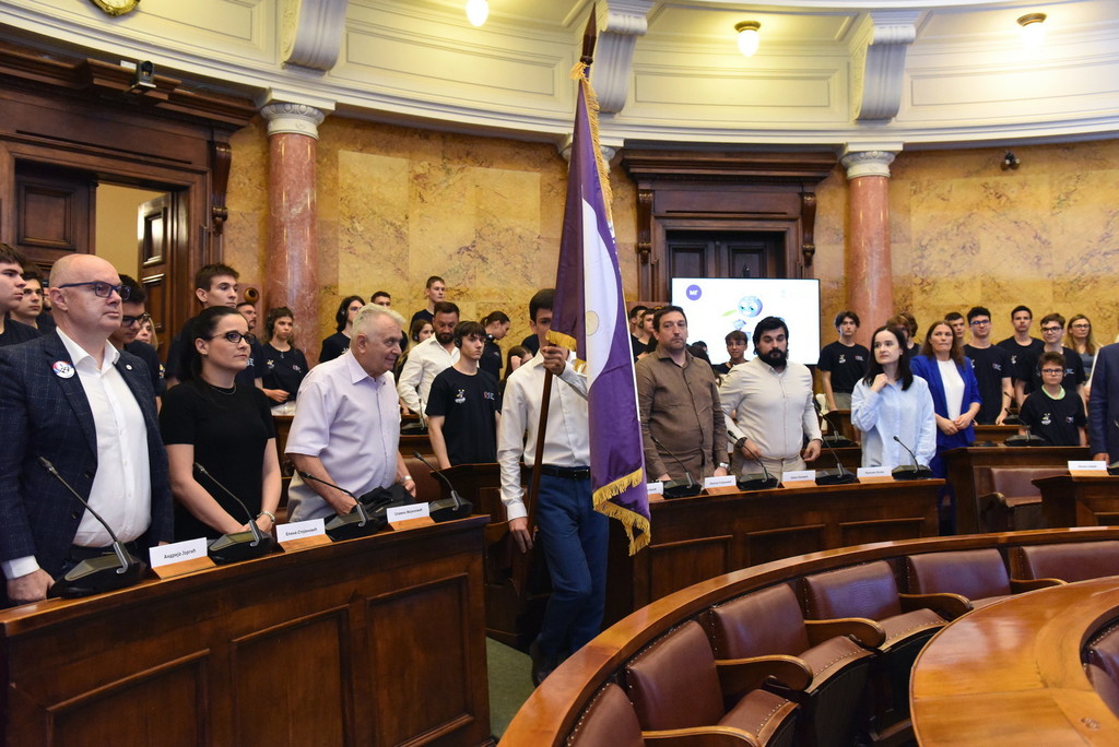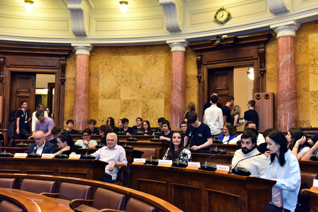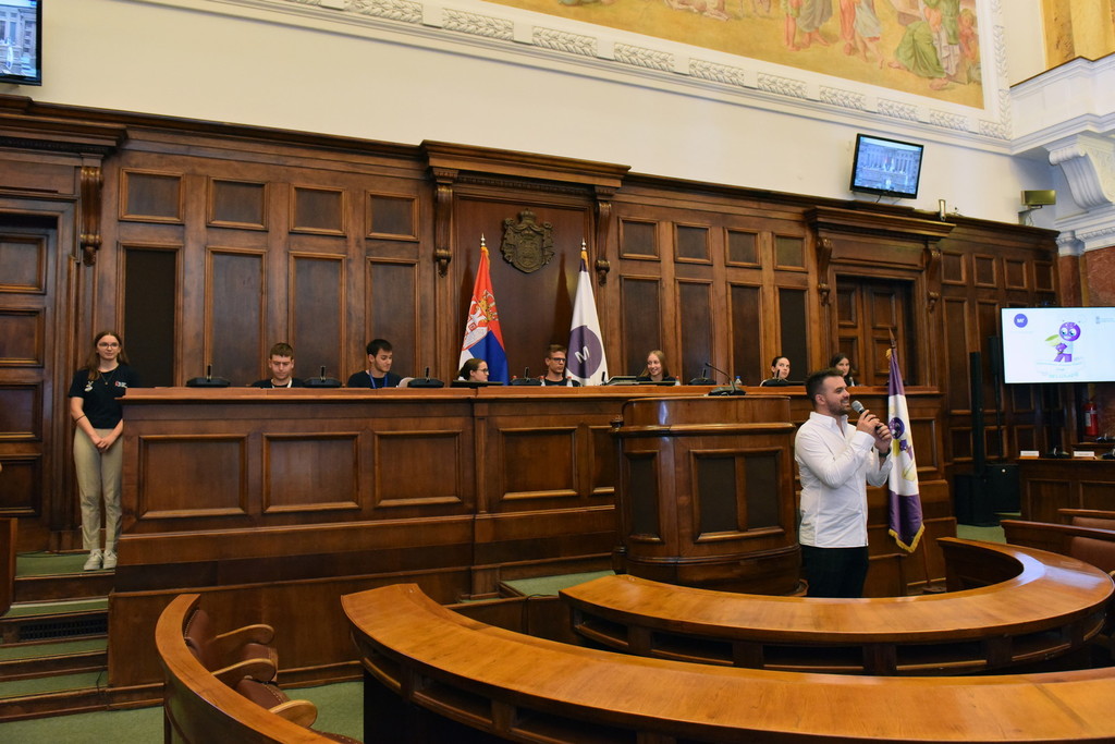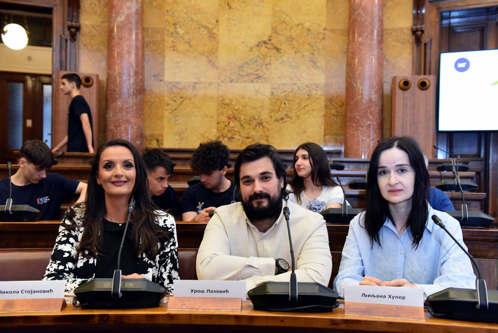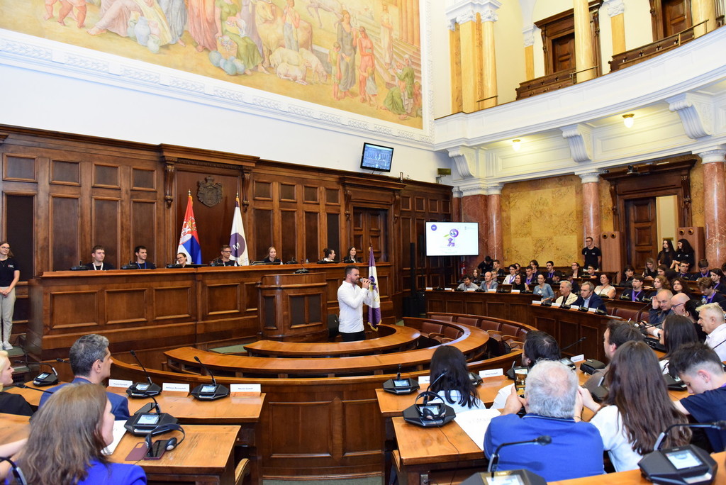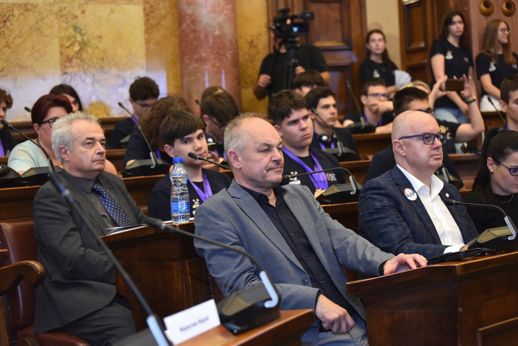 ОпштеМЕЂУНАРОДНА ТАКМИЧЕЊА-фотографијеУ среду, 26. јуна 2024. године у Народној скупштини Републике Србије свечано је затворен дванаести Куп Математичке гимназије. Гостима се обратила директорка Мирјана Катић. Министарство просвете је и ове године било покровитељ Купа. Куп су финансијски помогли: непрофитна организација “Клик за Србију”, компанија “Бамби”, Фондација “Сања Миленковић”, компанија “АБ Софт” и компанија Wargaming.