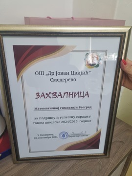 Трећа школа у овој години, којој је уручено пет рачунара са пратећом опремом и софтвером је ОШ "Др Јован Цвијић" у Смедереву.