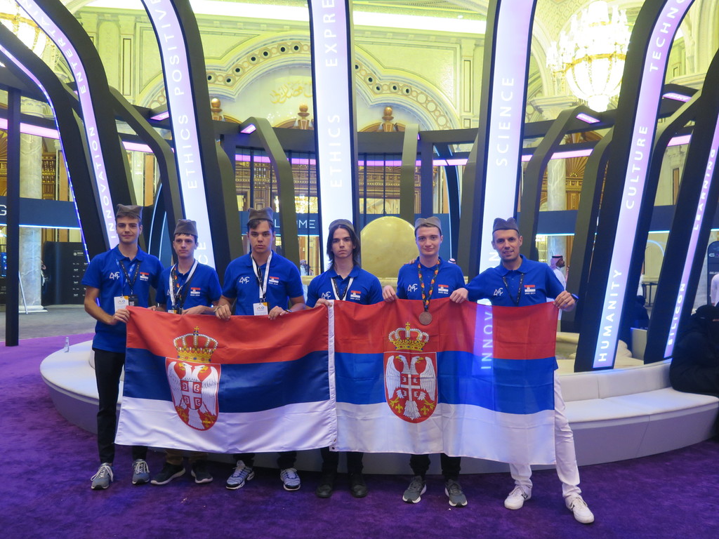 ОпштеМЕЂУНАРОДНА ТАКМИЧЕЊА-фотографијеНа Међународној олимпијади из вештачке интелигенције (International Artificial Intelligence Olympiad – IAIO), која је од 8. до 12. септембра 2024. године одржана у Ријаду, Саудијска Арабија, у конкуренцији 90 такмичара из 25 земаља, четворочлана информатичка екипа Србије освојила је једну сребрну и једну бронзану медаљу: