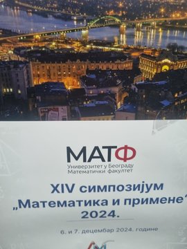 ОпштеСеминари и предавањаУ суботу, 7. децембра 2024. године директорка Мирјана Катић учествовала је на XIV симпозијуму "Математика и примене" које се одржало на Математичком факултету у Београду.