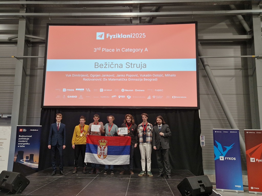 Тим ученика трећег разреда Математичке гимназије Андреја Дробњаковића, Владимира Ђурице, Растка Илића, Јована Кулезића и ученика Гимназије Краљево Душана Лазића освојио је прво место у својој категорији.