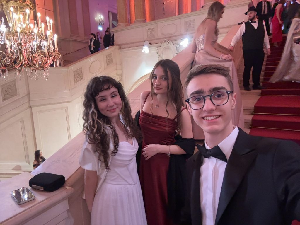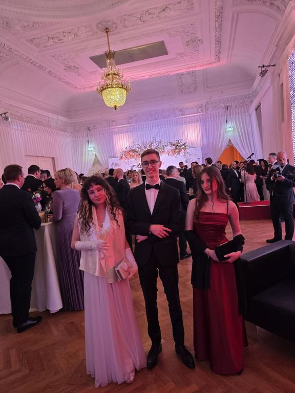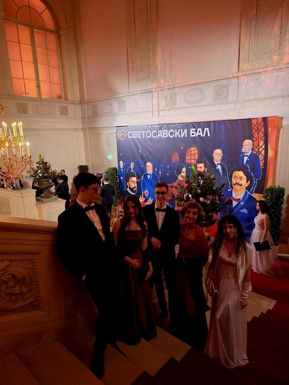 ОпштеДОГАЂАЈИ-фотографијеУченици Математичке гимназије Андреј Дробњаковић, Ива Живковић и Ања Тешевић, заједно са директорком Мирјаном Катић, били су почасни гости 26. Светосавског бала, који је 31. јануара 2025. године одржан у величанственој палати Хофбург у Бечу. Бал је организовало удружење Српски центар, настављајући дугу традицију неговања српске културе и обичаја у срцу аустријске престонице.