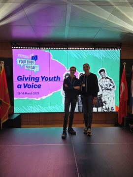 ОпштеДОГАЂАЈИ-фотографијеУченик Математичке гимназије Андреј Дробњаковић и директор школе били су 13. и 14. марта 2025. године учесници конференције YEYS 2025 (Your Europe, Your Say) у Бриселу, коју је организовао Европски економски и социјални комитет (EESC).