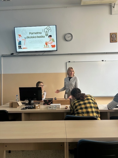 ОпштеПројекти - фотографијеТоком трећег пројектног састанка који се одржао код нас у Математичкој гимназији од 31.03. до 04.04.2025.године, имали смо прилику да угостимо партнерске школе и проведемо са њима пет незаборавних дана. Тема састанка је била Вршњачко учење, тако да смо гостима приредили едукативне радионице и предавања везана за паметно баштованство. Првог дана, гости су имали прилику да се упознају са нашом школом и обиђу стакленик и паметну башту у дворишту школе.