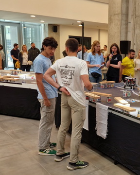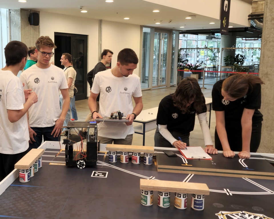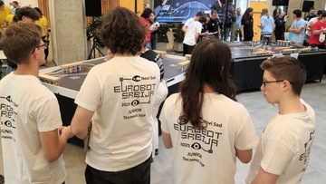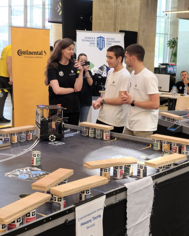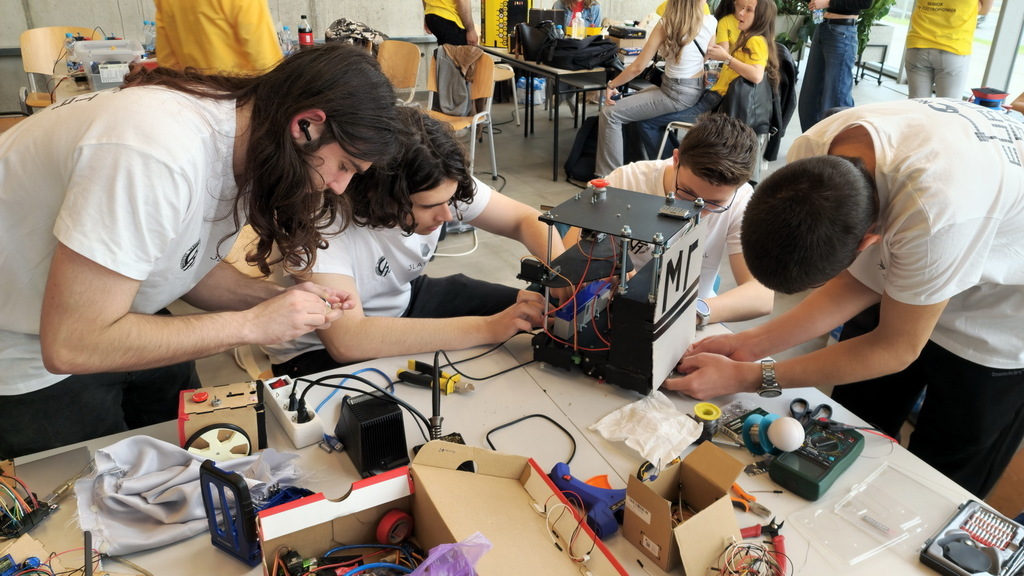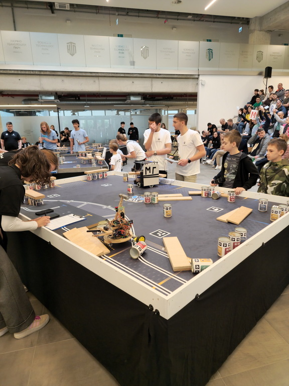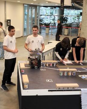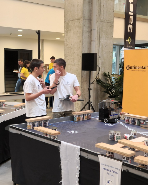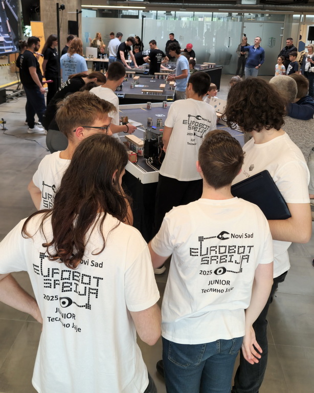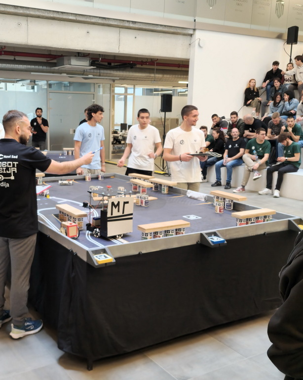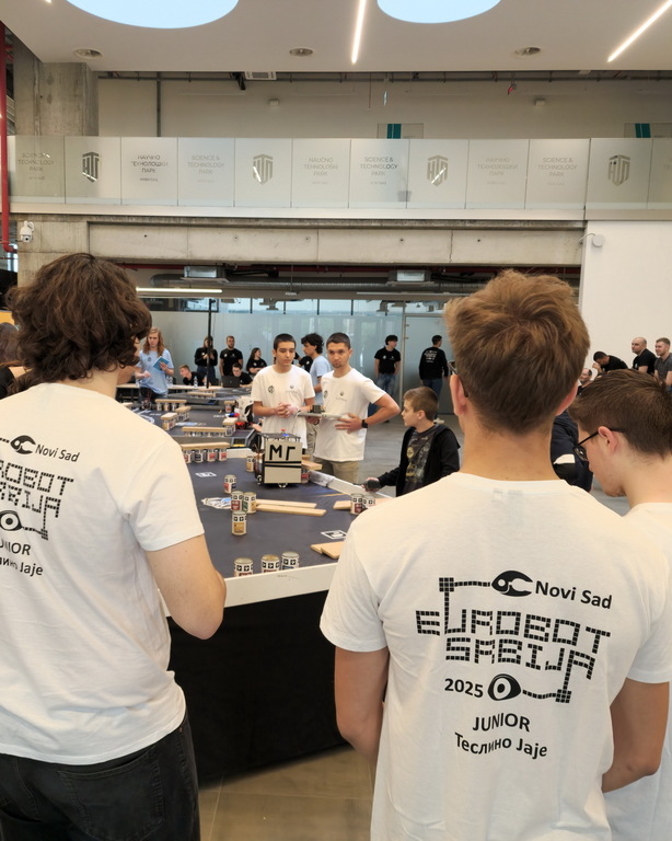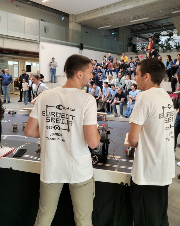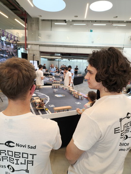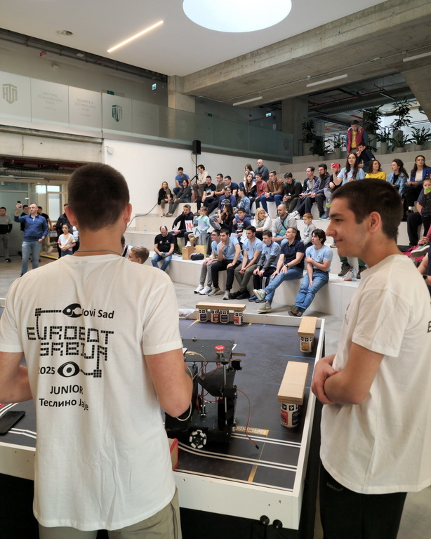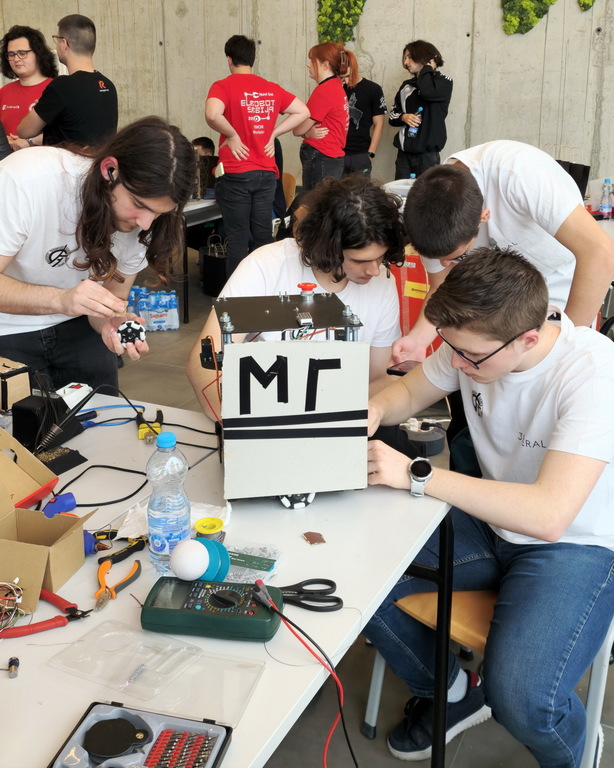 ОпштеТАКМИЧЕЊА У ЗЕМЉИ-фотографијеУ суботу, 10. маја 2025. године, шест ученика Математичке гимназије учествовало је на Државном такмичењу из роботике, које је уједно представљало квалификације за међународно такмичење Eurobot 2025.