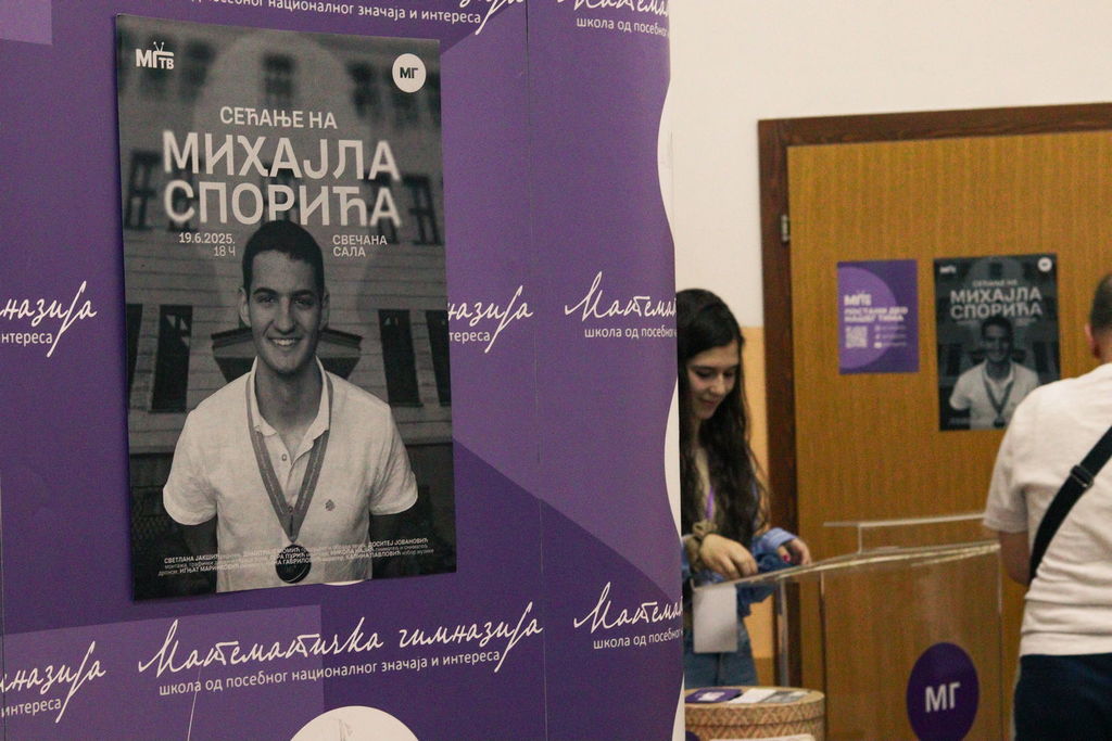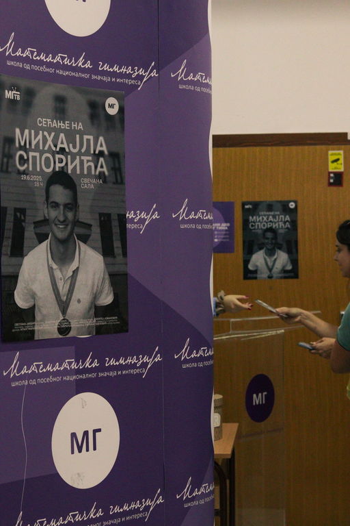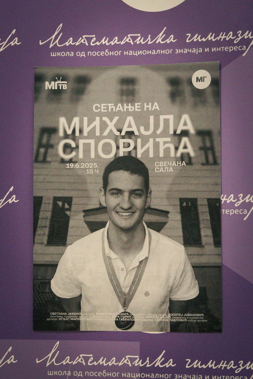 ОпштеДОГАЂАЈИ-фотографијеУ четвртак, 19. јуна 2025. године, у свечаној сали Математичке гимназије одржана је премијера документарног филма „Сећање на Михајла Спорића“, у продукцији МГ ТВ-а.