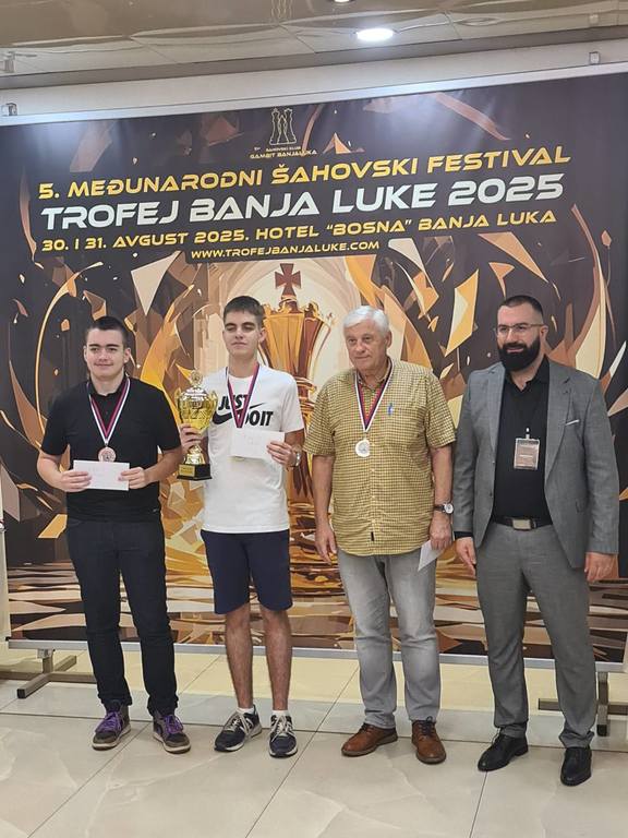 ОпштеМЕЂУНАРОДНА ТАКМИЧЕЊА-фотографије30. и 31. августа 2025. године у Бања Луци, у Републици Српској, одржан је 5. међународни шаховски фестивал „Трофеј Бања Луке“, турнир на ком Математичка гимназија учествује трећи пут за редом, и такмичи се као школска шаховска секција у конкуренцији шаховских клубова.
