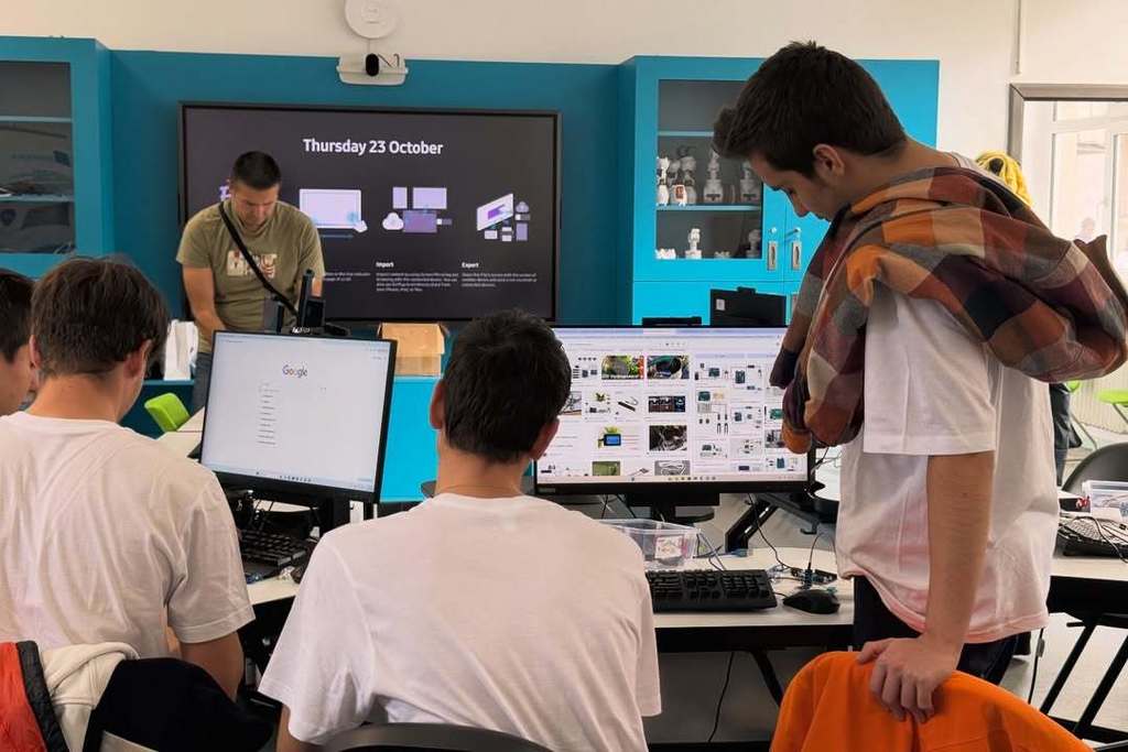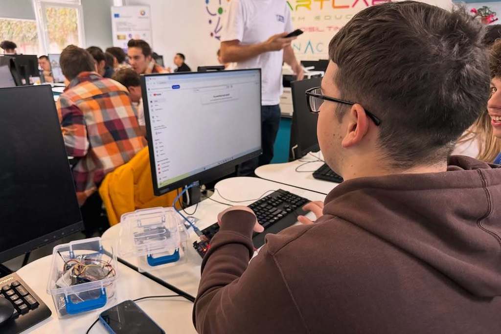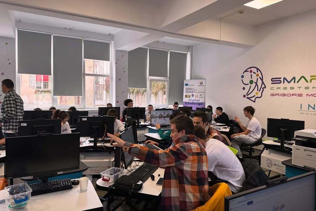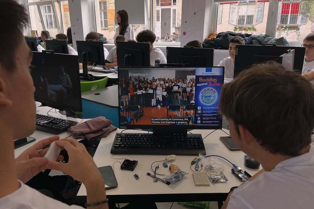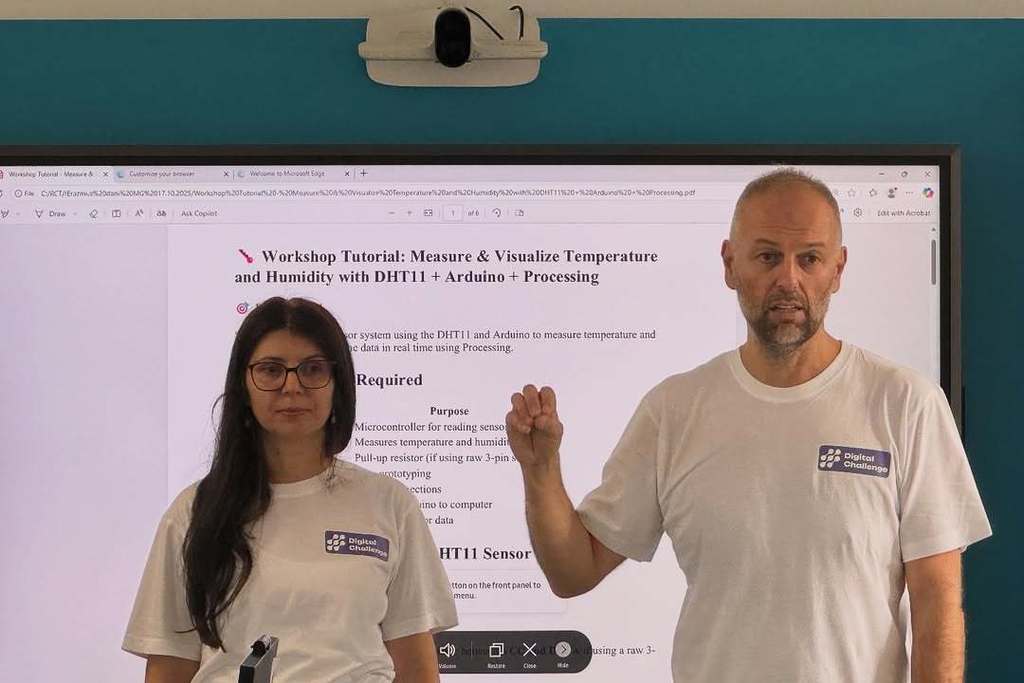 У оквиру пројекта „Дигитални изазов“, заједно са ученицима из Темишвара, наши ученици учествовали су у низу радионица посвећених микроконтролерима и њиховој практичној примени. Предавачи из Румуније, као и представници Регионалног центра за таленте „Михајло Пупин“, ЕТШ „Никола Тесла“ (Панчево), организације Циркулирање и Математичке гимназије, ученицима су приближили рад са Ардуино платформом, примену различитих сензора и микроконтролера, као и визуелизацију података.