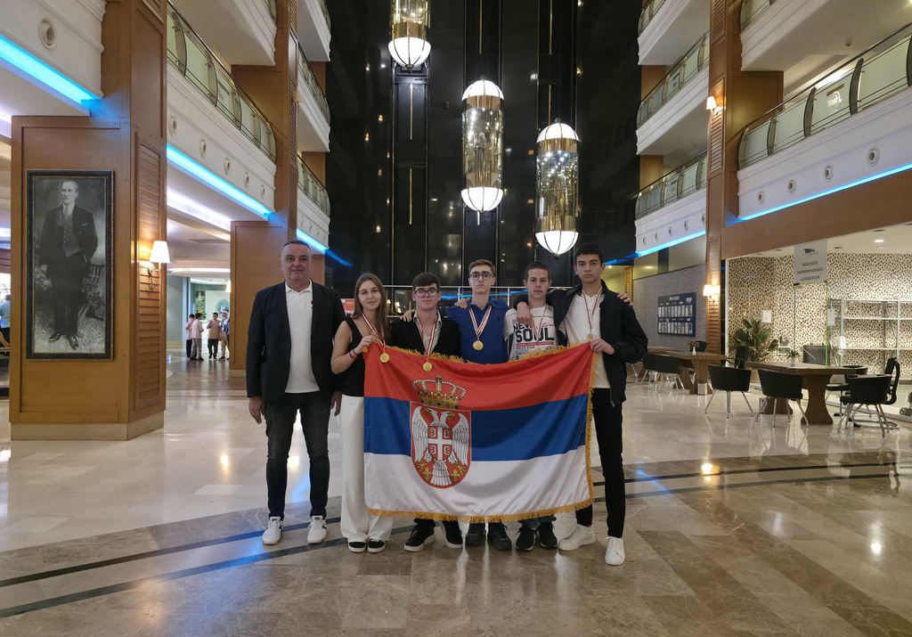 ОпштеМЕЂУНАРОДНА ТАКМИЧЕЊА-фотографијеНа XVII Међународној олимпијади у знању (XVII Uluslararası Bilgi Olimpiyatları), која се одржава од 26. октобра до 2. новембра у Анталији, Република Турска, ученици Математичке гимназије у Београду постигли су изузетне резултате освојивши укупно пет златних и једну сребрну медаљу.