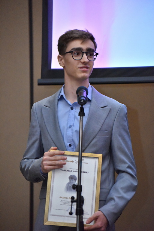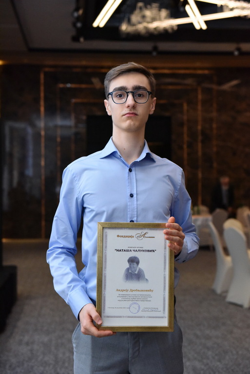 Награда „Наташа Чалуковић“ додељена је Андреју Дробњаковићу, чији резултати у 2025. години представљају највиши домет у међународној олимпијадској заједници. Само у овој години Андреј је освојио медаље на чак осам најпрестижнијих светских такмичења, а припада реткој групи младих научника који су истовремено у самом светском врху у више научних области.