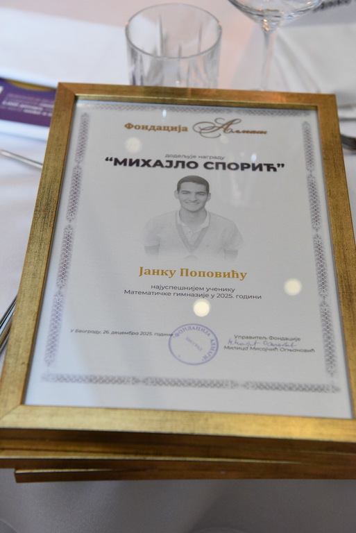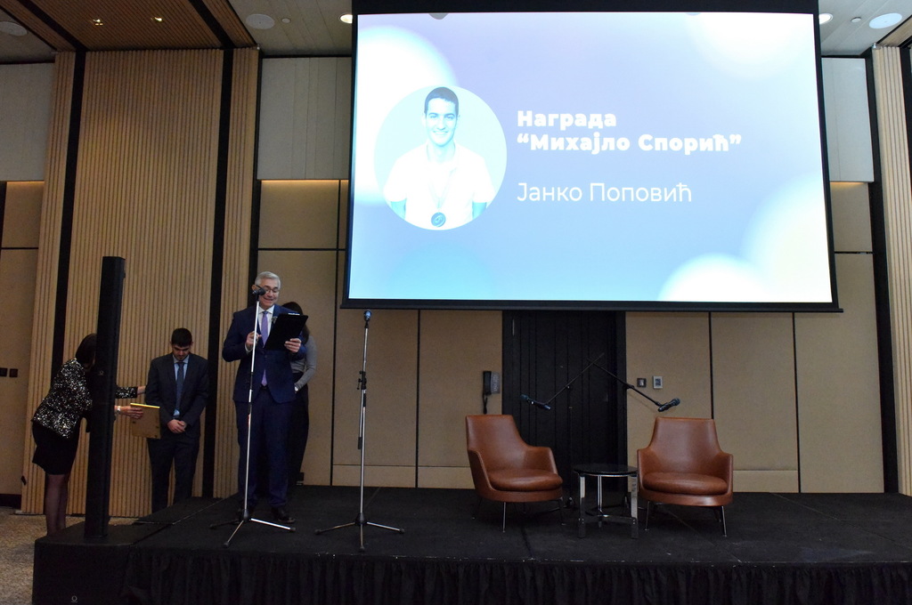 Награда „Михајло Спорић“, у знак сећања на Михајла Спорића, додељена је Јанку Поповићу, уз новчани износ од 50.000 динара. Јанко је у последње две године остварио изузетне резултате на најпрестижнијим међународним такмичењима из физике и хемије, а посебно се издваја чињеница да је на Међународној олимпијади из хемије освојио злато (2023), сребро (2024) и бронзу (2022), чиме је постао најуспешнији српски такмичар у историји овог надметања. Проглашен је и ђаком генерације Математичке гимназије у школској 2024/2025. години. Награду је уручила Михајлова сестра Марија Спорић.