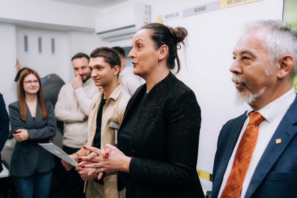 Мирјана Катић, директор Математичке гимназије захвалила се партнерима на подршци и истакла да нови МејкерсЛаб ученицима отвара простор за истинску креативност, практичан рад и развој инжењерских идеја. Координатор лабораторије и наставник физике, Јовица Милисављевић, нагласио је да овај отворени и модерни простор доноси потпуно нове могућности за наставу, тимски рад и пројекте секције PFE.