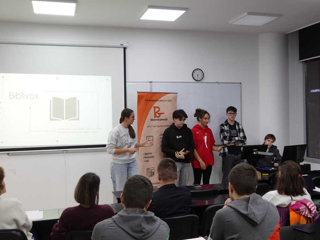 ОпштеТАКМИЧЕЊА У ЗЕМЉИ-фотографијеМаксим Јањић, Димитрије Младеновић, Ленка Лукић, Гаврило Љутај и Лара Ђокић чине тим који је победио на школском такмичењу „Пословни изазов“ које је одржано у Рачунарској гимназији у петак, 28. новембра, и на којем су изабрани представници Математичке гимназије и Рачунарске гимназије за учешће на регионалном нивоу такмичења.