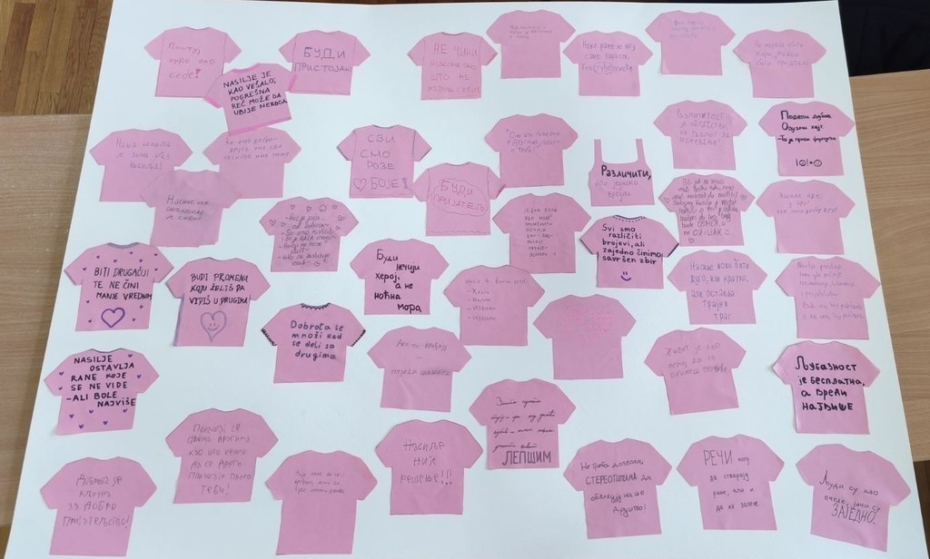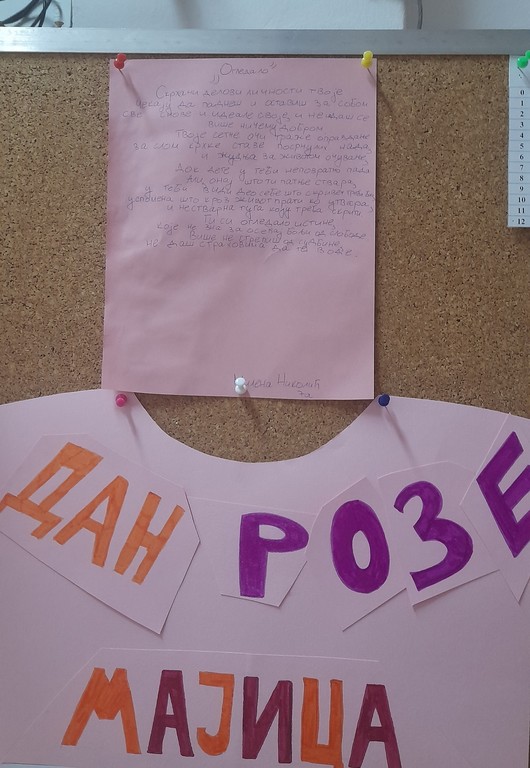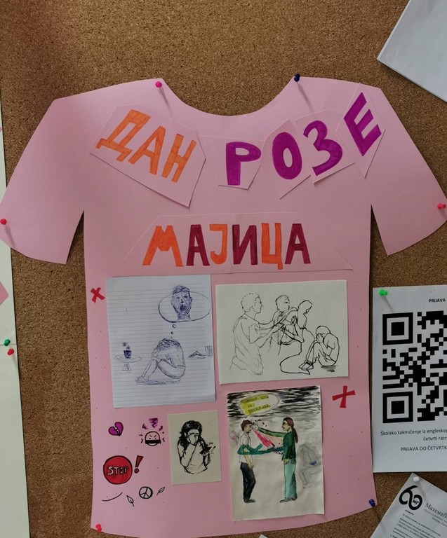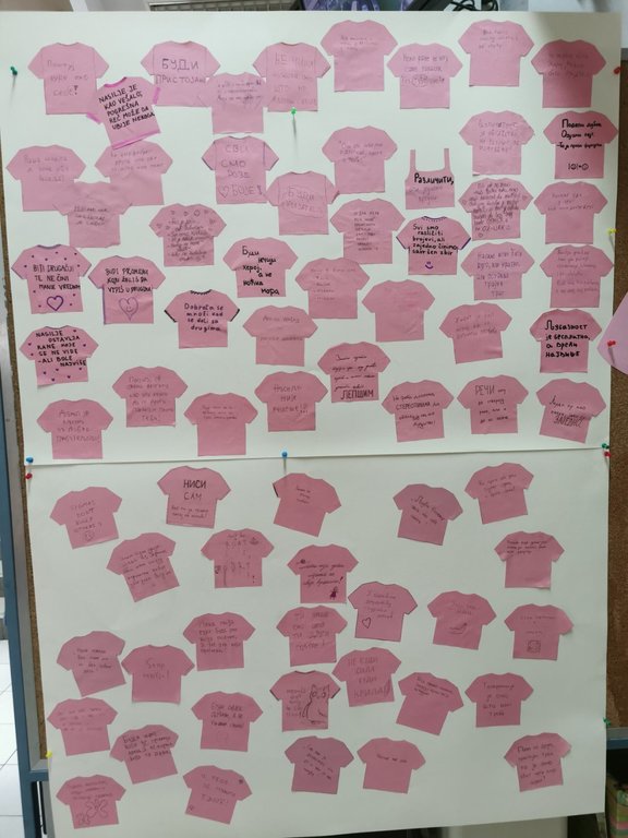 Ученици седмог и осмог разреда су на заједничком часу грађанског васпитања и верске наставе послали поруке подршке ненасиљу, солидарности, пријатељству и толераницији. Ученици старијих разреда израдили су тематски мурал. Радови ученика истакнути су на огласној табли школе.