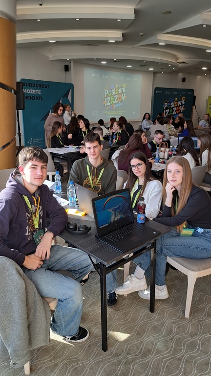 Велику захвалност дугујемо организацији Достигнућа младих у Србији, која годинама успешно организује такмичење „Пословни изазов“ и пружа ученицима прилику да развијају предузетничке вештине, креативност и тимски рад у реалним пословним изазовима.