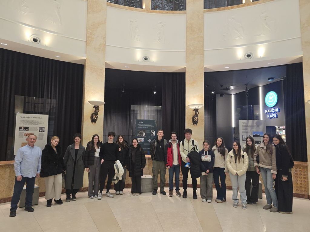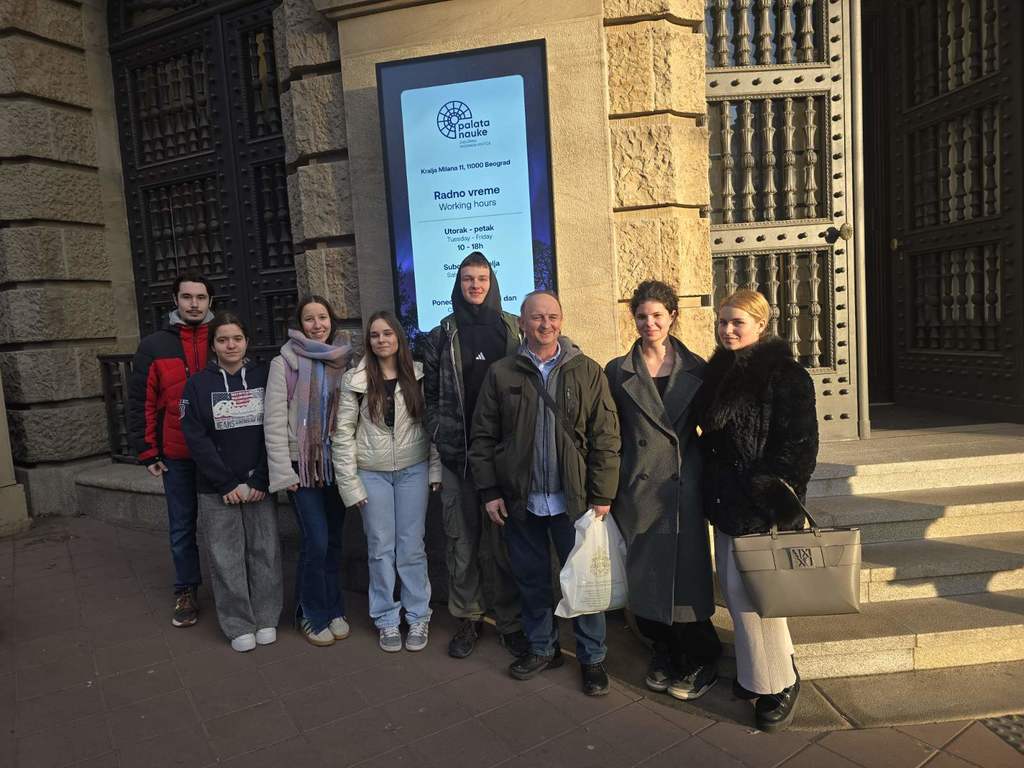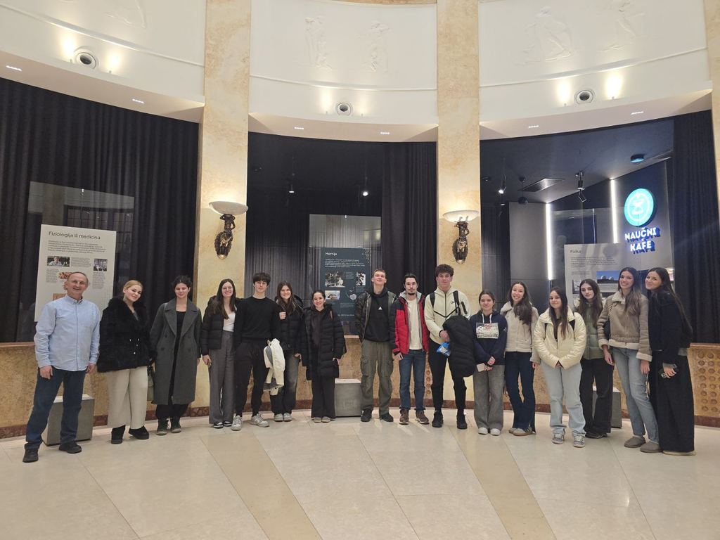 ОпштеДОГАЂАЈИ-фотографијеУченици Математичке и Рачунарске гимназије су 5. фебруара 2026. године, у пратњи Синише Митрића, наставника филозофије, посетили Палату науке и присуствовали предавању проф. др Косте Јовановића са Електротехничког факултета под називом „Како роботи и технологија обликују радна места будућности“.