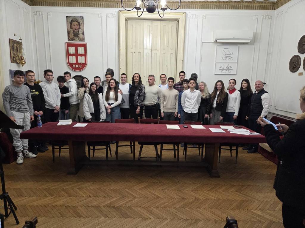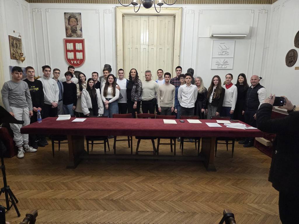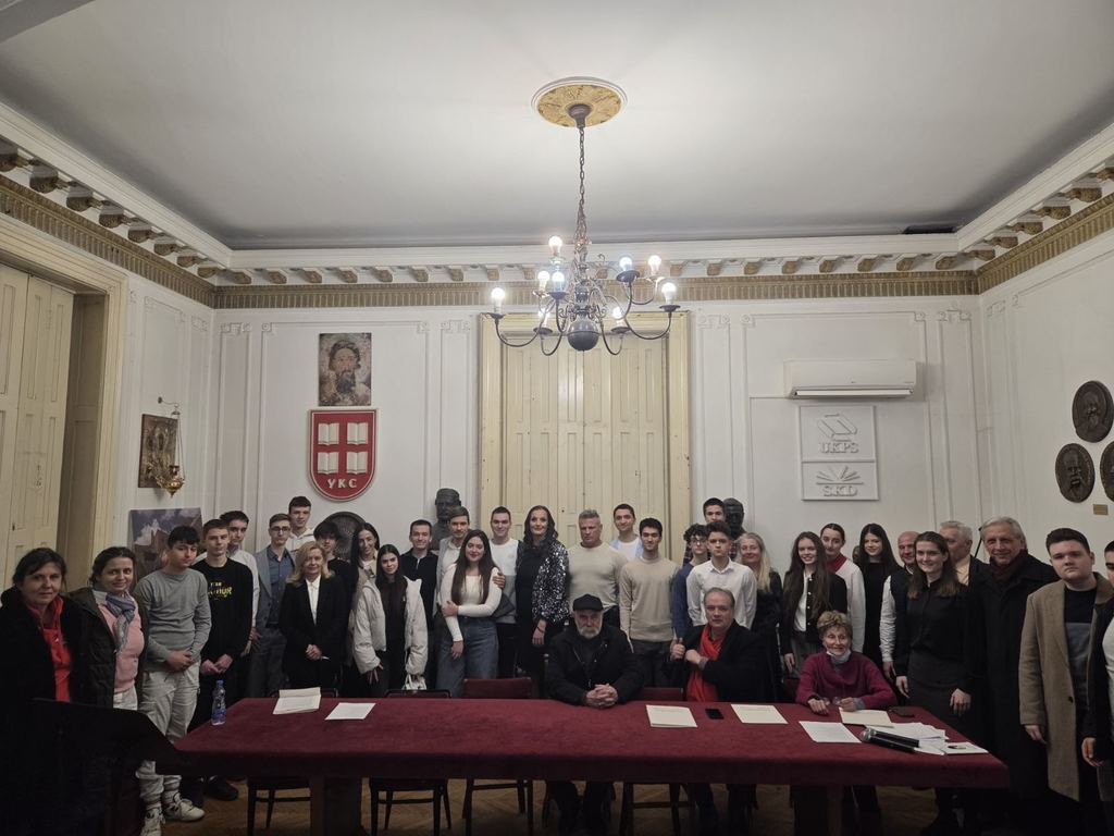 ОпштеДОГАЂАЈИ-фотографије26.02.2026. у 18 ч у сали Удружења књижевника Србије у оквиру трибине Млади долазе, ученици су презентовали изабране радове ученика који су посетили манастир Хиландар, односно Каково, у организацији манастира Хиландара и пројекта Хиландарски светионик.
