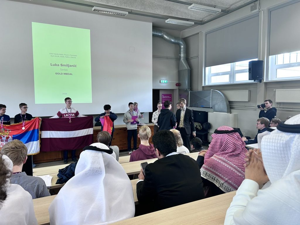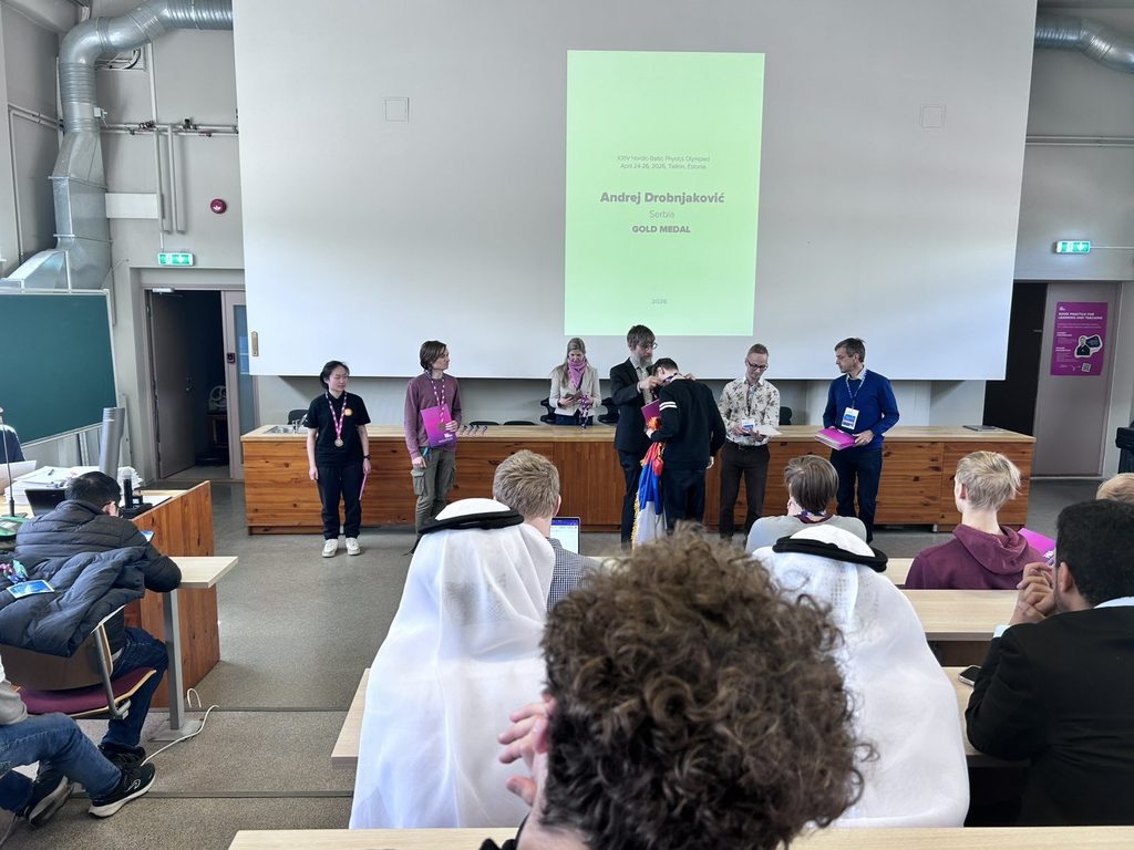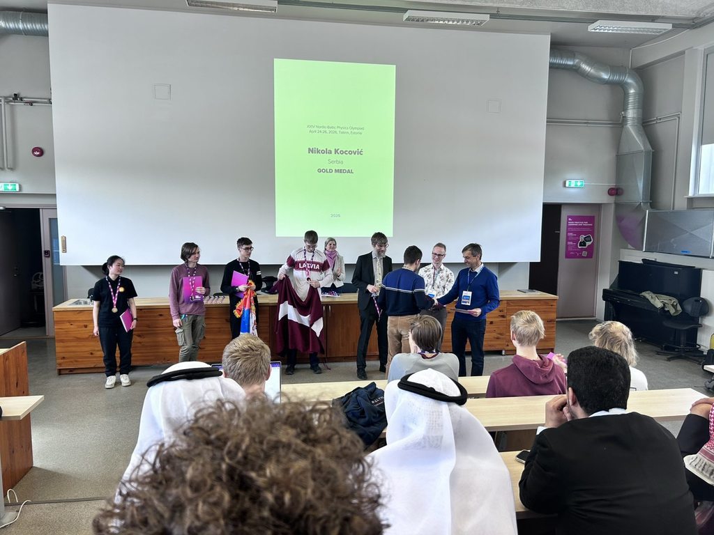 ОпштеМЕЂУНАРОДНА ТАКМИЧЕЊА-фотографијеНа управо завршеној Нордијско-Балтичкој олимпијади из физике, одржаној у Талину у Естонији, ученици Математичке гимназије у Београду остварили су изузетан резултат освојивши укупно пет медаља – четири златне и једну сребрну.