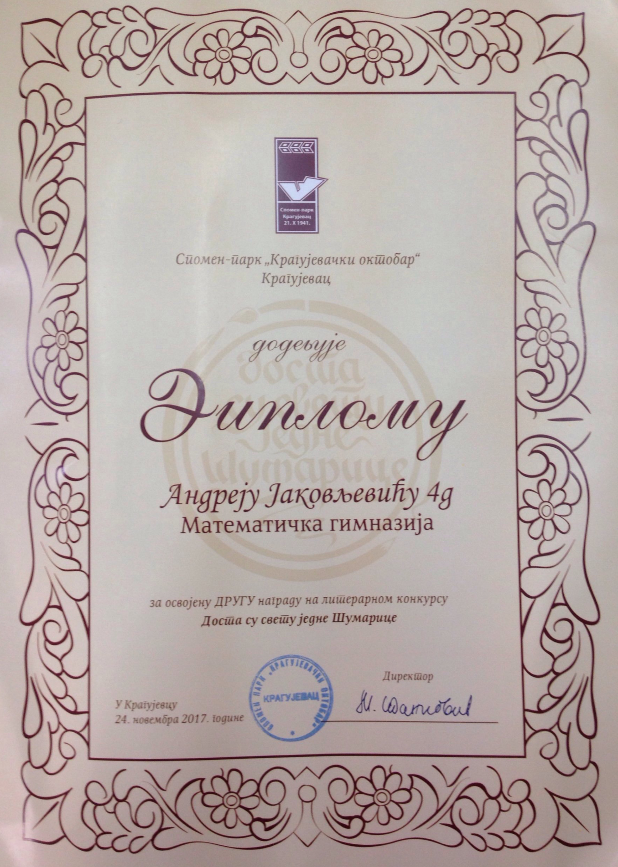 - Матеја Вукелић, ученик Математичке гимназије - сребрна медаља