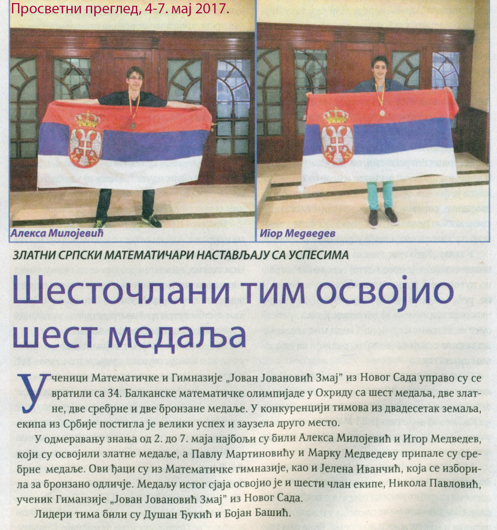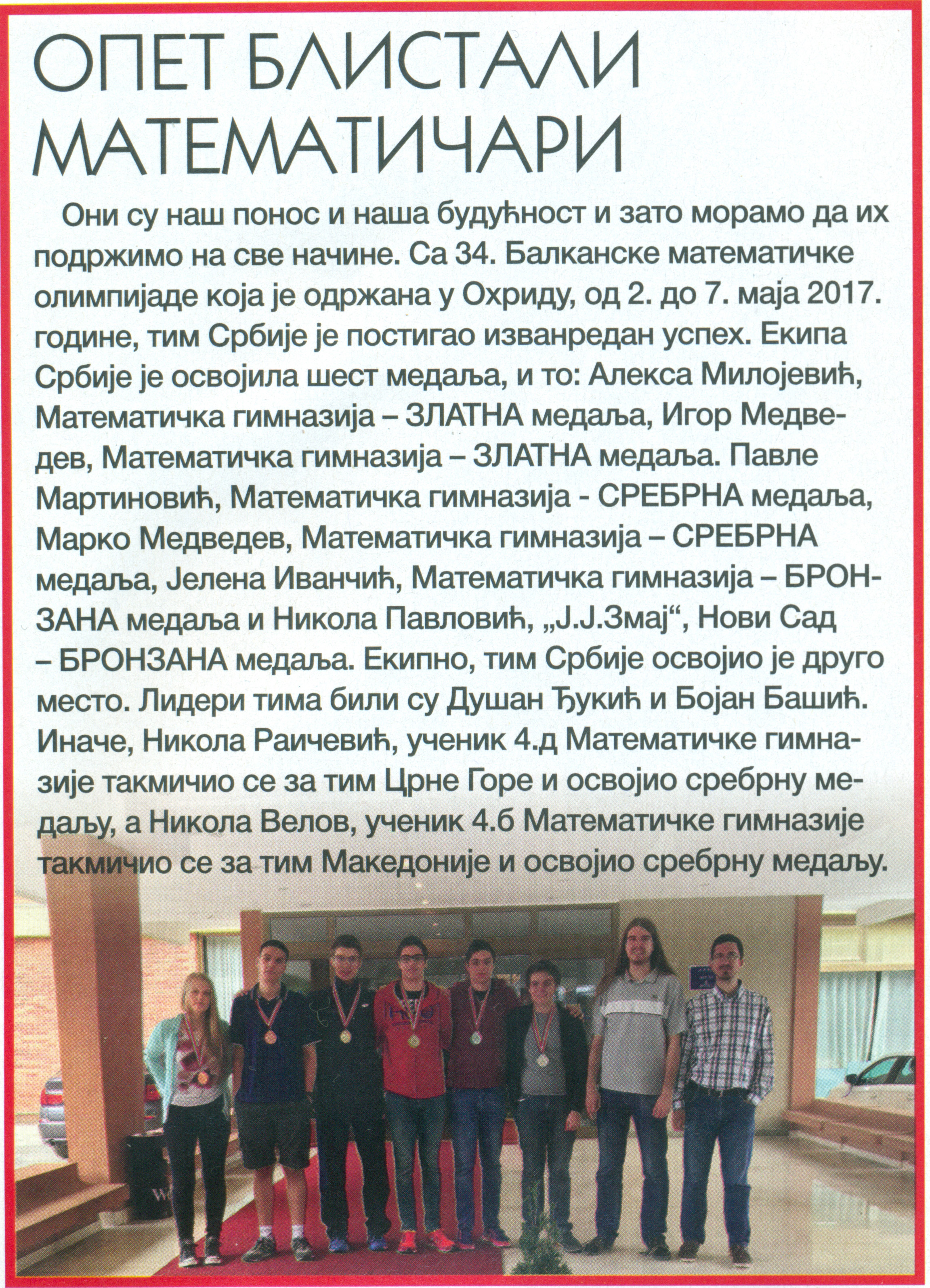 ОпштеУченице 4д Миа Мијовћ и Исидора Раденковић награђене су стипендијама за наставак школовања на Универзитету Оxford. Reach Oxford Scholarship је једна од најкомпетитвнијих стипендија, а за будуће студенте одабрани су кандидати који су се најбоље показали на тесту и инвтервјуу. Крајем маја ће бити познато да ли ће се Мии и Исидори прикључити још неко од наших ђака - и то на Кембриџу. Честитке свим ученицима који су примљени ове године и посебне честитке за девојке које су добитнице стипендија!